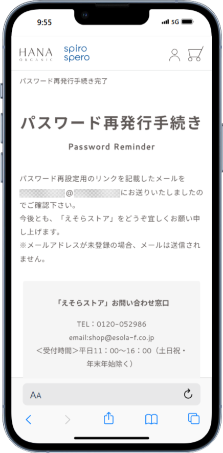 ④メールのURLから、パスワード変更画面へ。