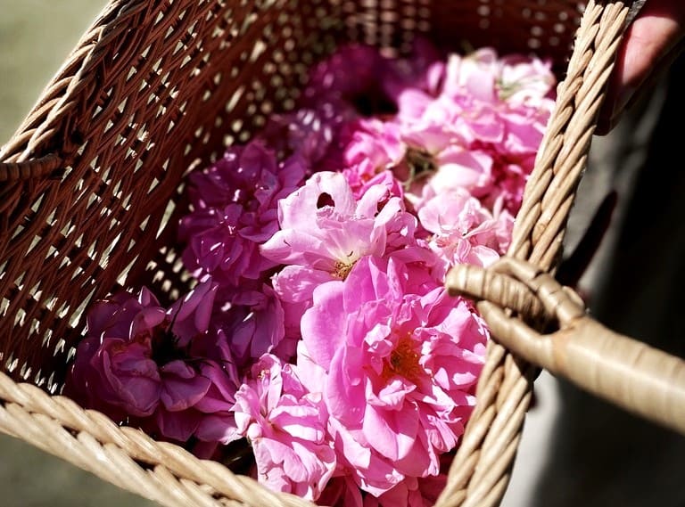 バラの香りには500種類以上の植物化合成分が含まれ、この香り成分=精油こそがバラの効果の源となっています。