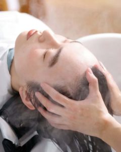 一緒に働くスタッフにも、お客様にも、リラックスして優しい気持ちになってもらえる場所でいたいというのがありますね。だから植物もたくさん置いていますし、髪のスタイリングだけでなくヘッドスパという癒しのメニューにもとても力を入れています。HANA ORGANIC のトリートメントを使ったヘッドスパも、女性バランスを整えてくれるし、何よりも香りがすごく気持ちいいと評判なんですよ。
