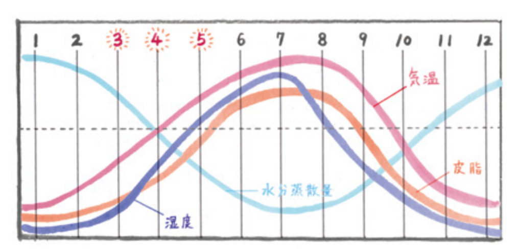 3,4,5月は温度と湿度が急上昇。肌環境が複雑に。