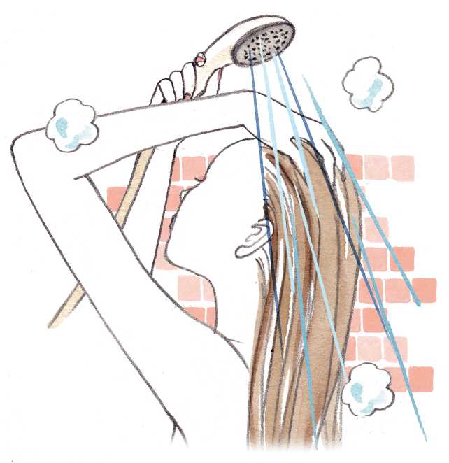 常在菌のバランスが乱れて善玉菌が減ってしまった頭皮を洗う時は、洗浄成分の入ったシャンプーは使わず「湯シャンプー」。