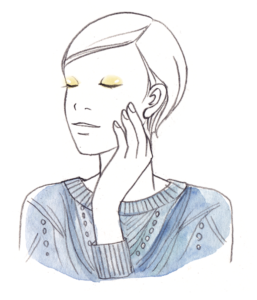 夕方になると目元がカサついて小ジワっぽくなったり、口元のパウダーなどが崩れやすい時に。基礎ケアの後、目元や口元に各1滴、スキンケアオイルを指の腹に取りやさしくなじませるように重ねます。