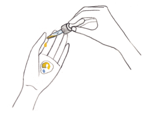 ムーンナイトミルクにスキンケアオイル1,2滴を加えて肌を柔らかく。オイルの量は肌の状態に合わせて、お好みで調節します。