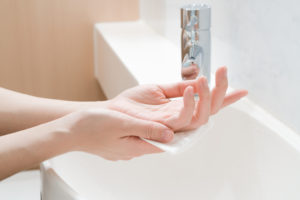 1.手を洗う温度は、32~35℃の、体温よりも低い温度のぬるま湯で。