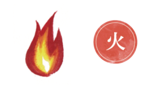 火が燃えるときの熱く明るい性質。季節では夏、方角では南。五臓では「心(心臓)」に対応。喜びの感情や高揚感が高まりすぎると「心」に負担がかかる。
