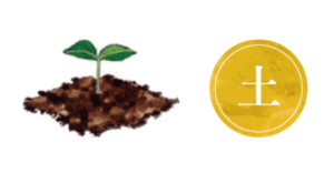 母なる大地、産み育てる性質。季節では梅雨(土用)、方角では中央。五臓では栄養を吸収してエネルギーを運ぶ「脾」に対応。思い悩む状態が続くと「脾」にダメージが及ぶ。
