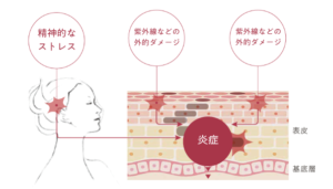 つまり脳と肌はつながっているので、肌が物理的なストレスを受けていなくても、脳に精神的なストレスがあれば、肌は身を守ろうとして美容にとっては嬉しくない様々な肌トラブルを引き起こしてしまうということになります。