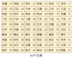 2024年は辰年ですが、本来の60干支でいうと甲辰(きのえ・たつ)となり、図を見ると41番目の干支となります。