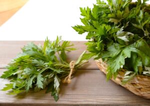 よもぎに含まれる成分には、気の巡りを助けるとされるシネオール(血行促進・呼吸を整える芳香成分)や、フラボノイド類(抗酸化・抗アレルギー作用)、タンニン(引き締め・抗炎症)などがあります。これらの複合的な働きによって、呼吸を深め、巡りを促し、肌にハリと潤いを与えると考えられています。郊外に出かけることがあれば、野原でよもぎを摘んで生のまま使ってもよいですね。