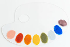 子供の頃に色の3原色というのを習ったことを思い出すかもしれませんが、赤、青、黄、白を絵具のように混ぜ合わせるとこのパレットのようないろんな色が生み出せます。