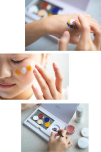 肌荒れに対応する植物成分が配合され、石鹸で落ちるので、敏感肌の方にも、お子さんと一緒に楽しむこともできるパレットです。