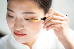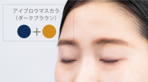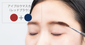 また、作ったブラウンは、アイブロウマスカラにもなります。アイブロウ用のスクリューブラシ(マスカラのブラシのような形状のもの)に作った色をなじませて、そのまま優しく眉に載せていくだけ。毛流れに逆らってブラッシングすると、眉毛一本一本に自然に色をつけることができます。