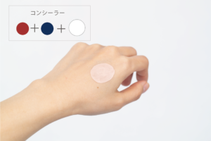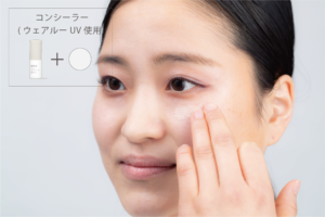 また、ウェアルーUVに白を混ぜ合わせることで、ウェアルーUVの色味を生かしたコンシーラーを簡単につくることもできます。