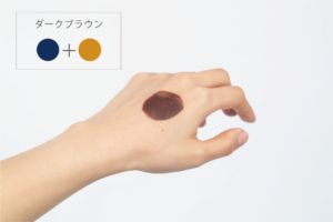 基本は赤と青を混ぜ合わせることで作ることのできる茶。そのニュアンスは青の分量や、黄色との掛け合わせで出すことができます。