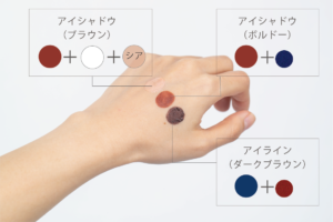 普段のメイクとして使う場合は、まずは日本人の顔に馴染みやすい、赤と茶を自分好みのニュアンスに作れるようになるととても便利です。