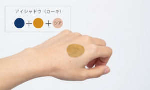 少量の赤をとって、少しずつ黄や白をまぜていってみて。あ、この色、と思うものを瞼に載せてみてください。薄かったな、ちょっと違うな、と思えば肌の上で色を足してあげることもできます。