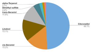 今年も2020年、2021年の香りの割合と似ていて、ダマスクばらの万能薬と呼ばれる効能を生み出す「ゲラニオール」(cis-Geraniol, trans-Geraniol)が豊富で、効能も香りもリッチなものとなりました。