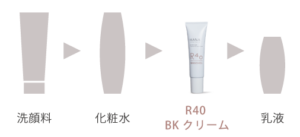 また、植物性のグリセリンやスクワランを始めとした保湿成分や常在菌バランスを整えるバイオエコリアも配合しているため、R40 BKクリームだけで十分に潤うという方は乳液まで塗っていただく必要はありません。
