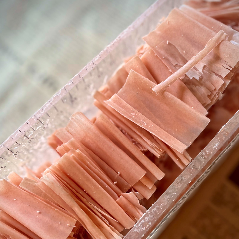 実はこれは、HANAオーガニックの洗顔石けん「キューブソープ」を削るときに出る、端材なのです。